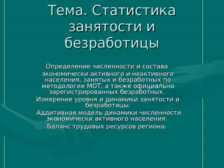 Презентация Статистика занятости и безработицы Азизян Георгий
