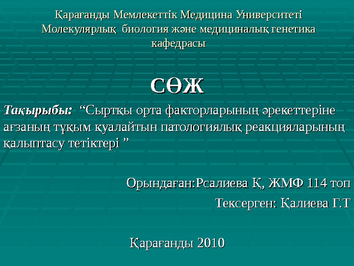 Презентация Сырты орта факторларыны рекеттеріне азаны тым уалайтын патологиялы реакциялары