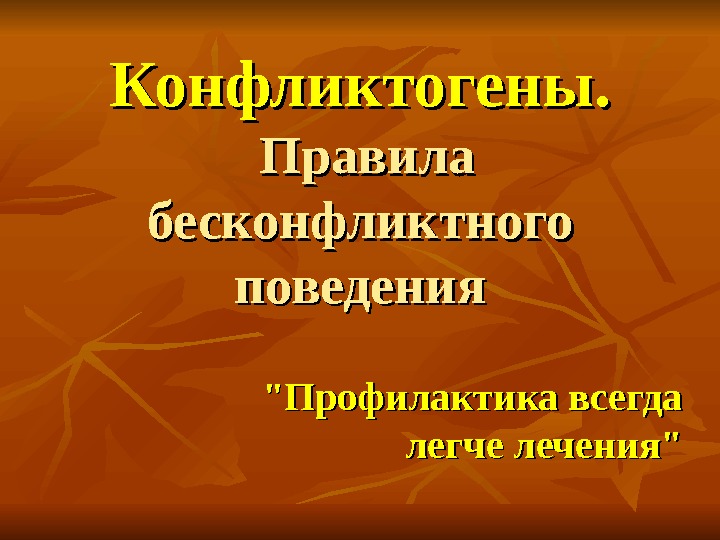 Презентация Тема 11. Конфликтогены и правила предотвращения Конфликтов