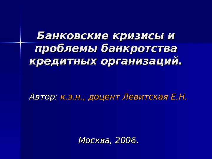 Презентация Тема 15. Банковские кризисы и проблемы банкротства кредитных организаций
