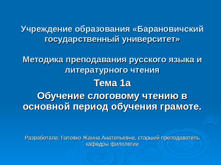 Презентация Тема 1 а. Обучение слоговому чтению в основной период обучения грамоте.