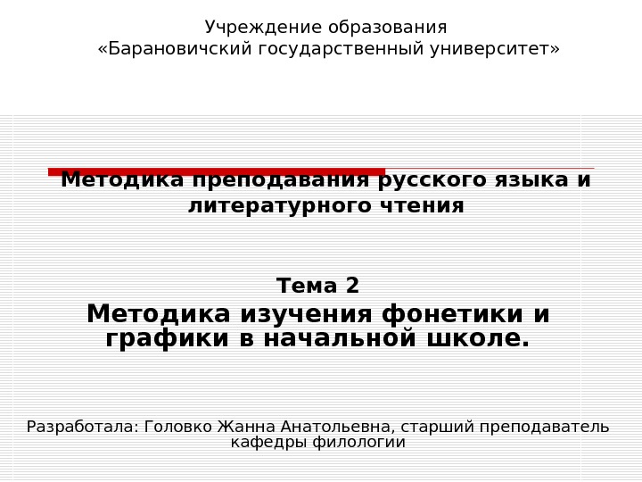 Презентация Тема 2. Методика изучения фонетики и графики в начальной школе.
