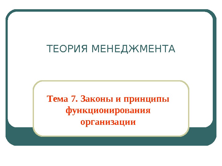 Презентация Тема 7.Законы и принципы функциоирования организации