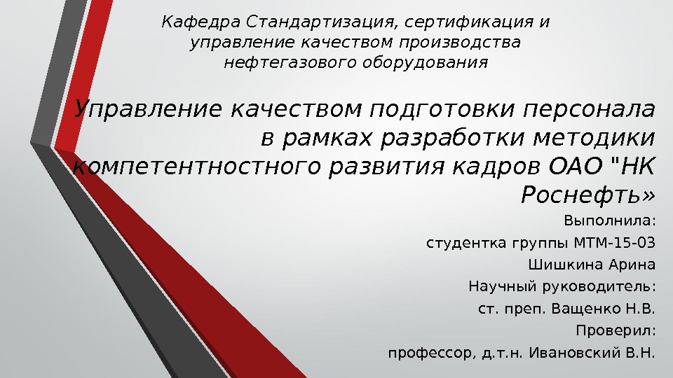 Презентация Управление качеством подготовки персонала в рамках разработки методики