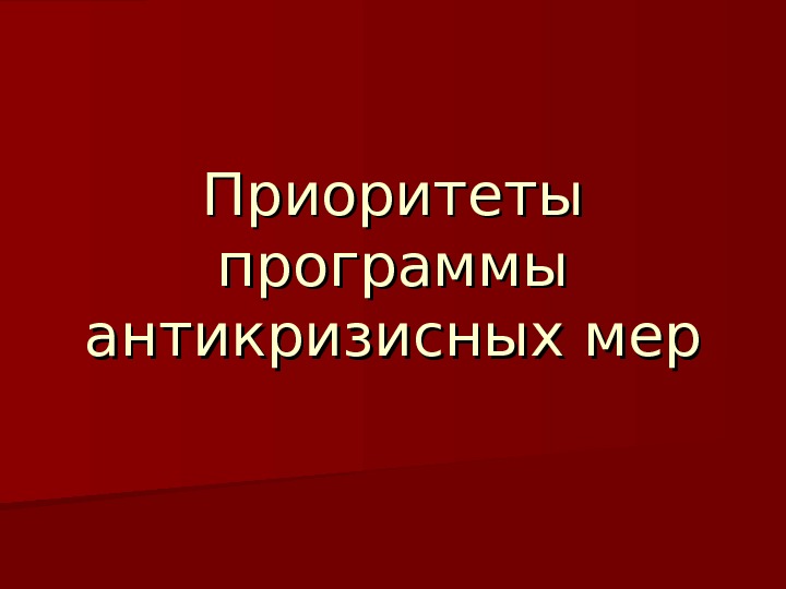 Презентация Управление социальными рисками и кризисами 2 чать Приоритеты программы антикризисных мер