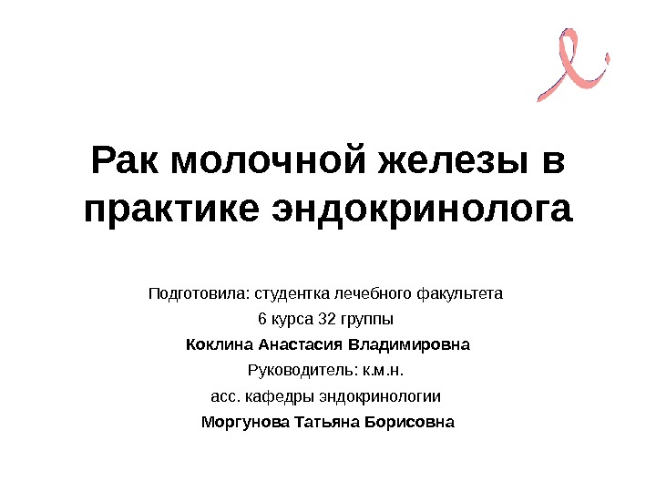 Презентация Эндокринопатии и рак молочной железы Коклина А.В