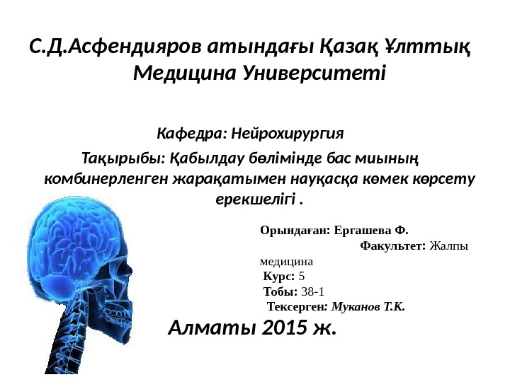 Презентация абылдау блімінде бас миыны комбинерленген жараатымен науаса кмек крсету ерекшел