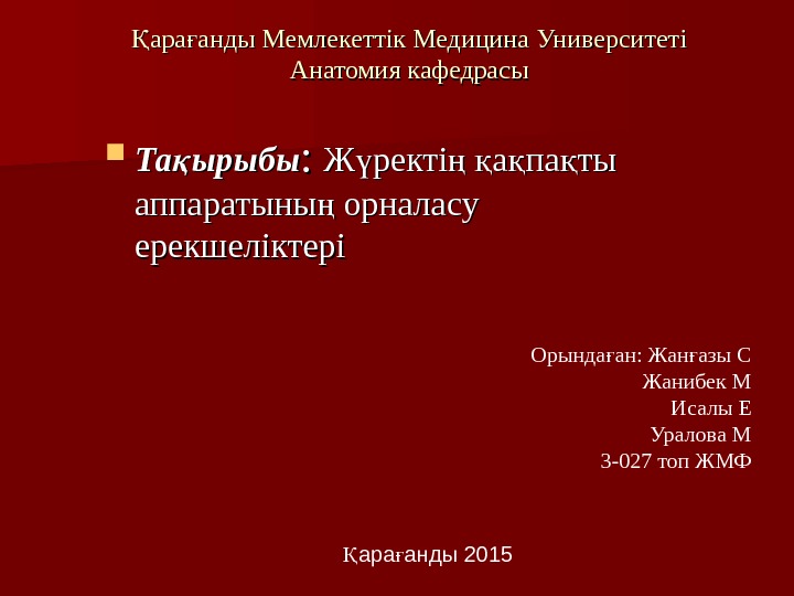 Презентация жрек аауларыны сулелі кріністері