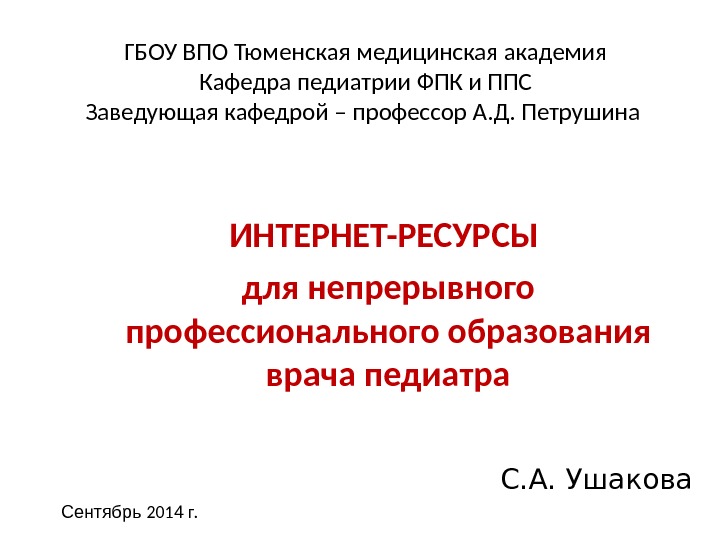 Презентация лекция Ушаковой С.А. ИНТЕРНЕТ — для педиатра интерны-2014