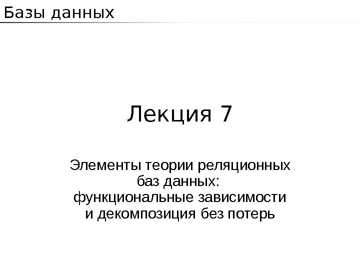 Презентация функциональные зависимости и декомпозиция без потерь