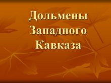 Дольмены Западного Кавказа Дольмены — памятники архитектуры мирового
