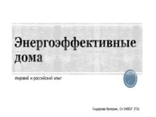 Энергоэффективные дома Мировой и российский опыт Сидорова Валерия,