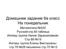 Домашнее задание 6а класс На понедельник Математика-№525 Русский-стр.85
