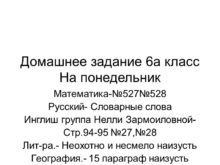 Домашнее задание 6а класс На понедельник Математика-№527№528 Русский-