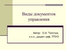 Виды документов управления Автор: О.А. Толстых, к.п.н., доцент