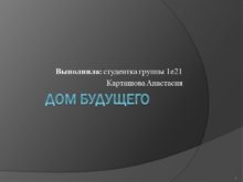 Дом будущего Выполнила: студентка группы 1е21 Карташова Анастасия