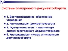 Cистемы электронного документооборота 1. Документационное обеспечение управления 2.