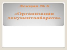 Лекция № 6 «Организация документооборота» Общие положения Под
