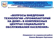 «ВОПРОСЫ ВНЕДРЕНИЯ ТЕХНОЛОГИИ «ПРОФИЛАКТОРИЙ НА ДОМУ» В КОМПЛЕКСНЫХ
