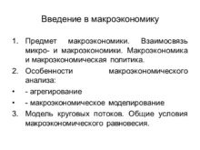 Введение в макроэкономику Предмет макроэкономики. Взаимосвязь микро- и