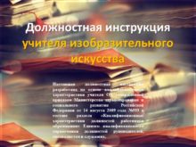 Должностная инструкция учителя изобразительного искусства Настоящая должностная инструкция