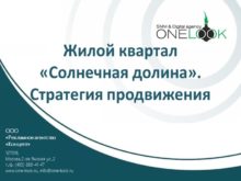 Жилой квартал «Солнечная долина». Стратегия продвижения ООО «Рекламное