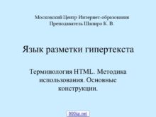 Язык разметки гипертекста Терминология HTML. Методика использования. Основные
