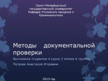 Методы документальной проверки Выполнила студентка 4 курса 2