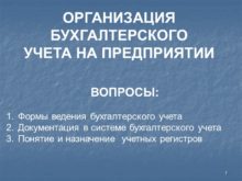 1 ОРГАНИЗАЦИЯ БУХГАЛТЕРСКОГО УЧЕТА НА ПРЕДПРИЯТИИ ВОПРОСЫ: Формы