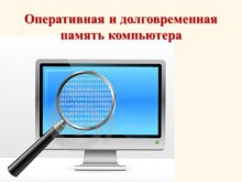 Оперативная и долговременная память компьютера Оперативная память Оперативная