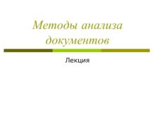 Методы анализа документов Лекция План Метод информационного анализа