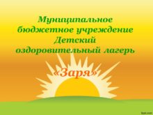 Муниципальное бюджетное учреждение Детский оздоровительный лагерь «Заря» «Заря»
