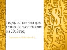 Государственный долг Ставропольского края на 2013 год Подготовила: