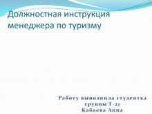 Должностная инструкция менеджера по туризму Работу выполнила студентка