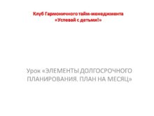 Клуб Гармоничного тайм-менеджмента «Успевай с детьми!» Урок «ЭЛЕМЕНТЫ