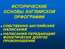 ИСТОРИЧЕСКИЕ ОСНОВЫ АНГЛИЙСКОЙ ОРФОГРАФИИ СОБСТВЕННО АНГЛИЙСКИЕ НАПИСАНИЯ НАПИСАНИЯ