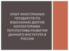 Опыт иностранных государств по взысканию долгов коллекторами. Перспективы