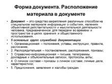 Форма документа. Расположение материала в документе Документ –