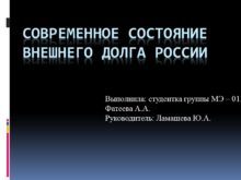 Современное состояние внешнего долга России Выполнила: студентка группы