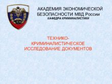 АКАДЕМИЯ ЭКОНОМИЧЕСКОЙ БЕЗОПАСНОСТИ МВД России КАФЕДРА КРИМИНАЛИСТИКИ ТЕХНИКО-КРИМИНАЛИСТИЧЕСКОЕ