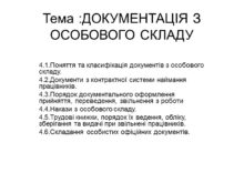 Тема :ДОКУМЕНТАЦІЯ З ОСОБОВОГО СКЛАДУ 4.1.Поняття та класифікація