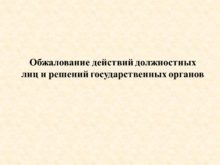 Обжалование действий должностных лиц и решений государственных органов