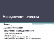 Менеджмент качества Тема 7. Документация системы менеджмента Елена