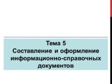 Тема 5 Составление и оформление информационно-справочных документов Содержание: