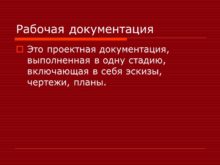 Рабочая документация Это проектная документация, выполненная в одну