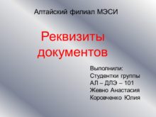 Алтайский филиал МЭСИ Реквизиты документов Выполнили: Студентки группы