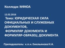 Колледж МФЮА 12.02.2016 Тема: ЮРИДИЧЕСКАЯ СИЛА ОФИЦИАЛЬНЫХ И