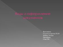 Виды и оформление документов Выполнила: Студентка группы И-201
