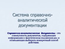 Система справочно-аналитической документации Справочно-аналитические документы — это совокупность