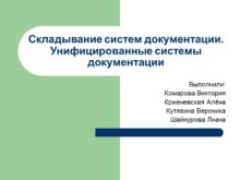Складывание систем документации. Унифицированные системы документации Выполнили: Комарова